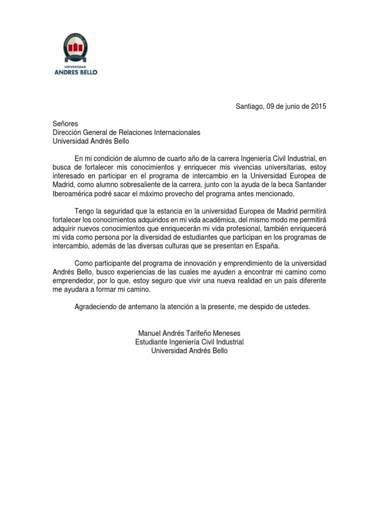 Carta de motivacion beca santander. Becas de movilidad becas de estudios becas de investigación. Generalmente cuando las becas que se ofertan tienen un número específico de aspirantes a las mismas se te exige que presentes una carta de motivación para becas con la finalidad de revisar las necesidades de cada aspirante y seleccionar a los mejores candidatos para tal beneficio. Ejemplos reales plantillas en inglés y en español hojas de trabajo y ejercicios prácticos y actualizaciones permanentes. Acá las becas funcionan más como un intermcabio por beneficios de ambas partes con respecto a los estudios que se pueden conseguir con ella.