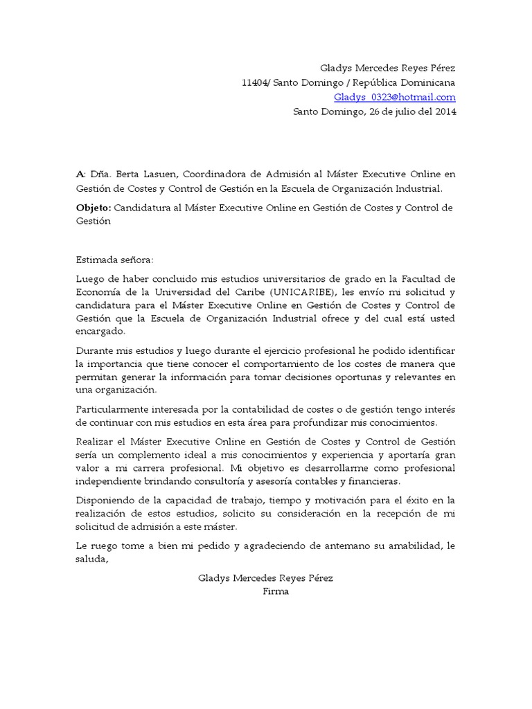 El máster se ha convertido en una de las formaciones más demandadas el problema es que existe un número limitado de plazas es por eso que muchos másteres ya sean internacionales o no requieren la escritura de una carta de motivación que explique las razones por las cuales el estudiante desea ingresar sus futuras aspiraciones y experiencias. San salvador 11 de marzo del 2014 lic. Infórmate de todas las características de las cartas de presentación y en el caso de que las necesites para tu admisión al máster consulta las cartas de recomendación. Carta de motivación para un master.