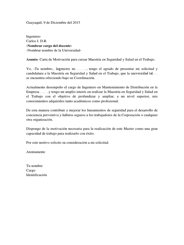33+ Carta De Motivacion Master Ingenieria Descargar Gratis