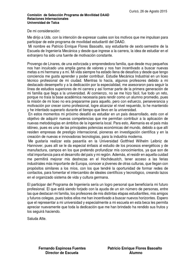 Es un buen documento para adjuntar a tu solicitud de una beca erasmus ya que el. Partiendo del punto de vista académico pienso que sería una gran oportunidad para perfeccionar mis saberes conseguidos en la facultad entrando a un ámbito internacional y con mira europea. A menudo son veinte segundos de lectura lo que te presenta el junta de becas y convencerlos de que busquen más en sus documentos para considerar una beca o admisión. Una carta de motivación de beca es su documento introductorio de una página adjunto con su solicitud de beca.
