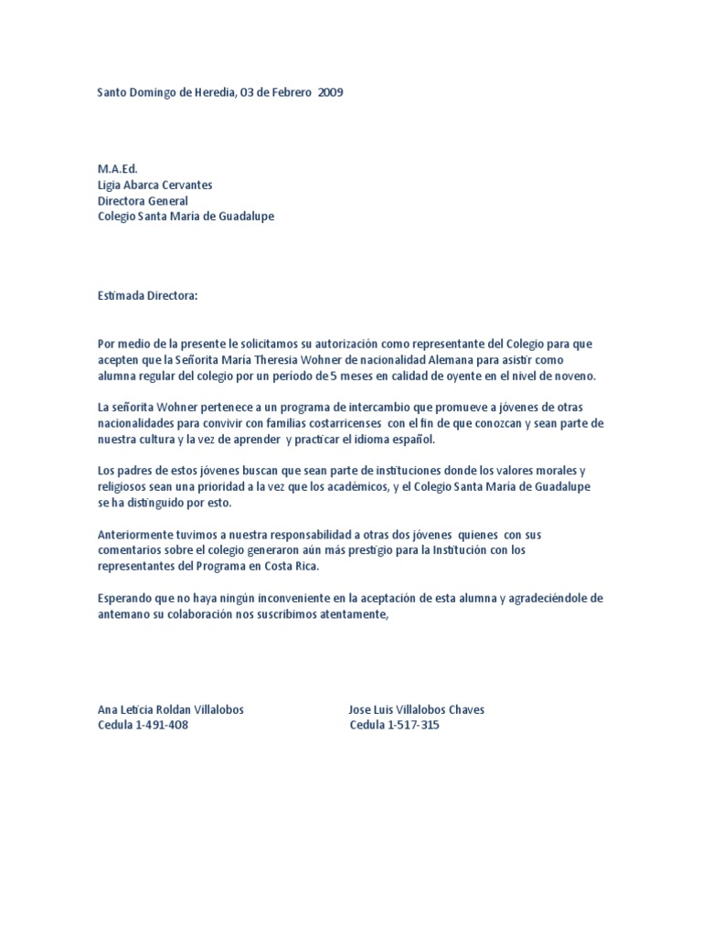 Esta carta no responde a ninguna ofera concreta es una especie de candidatura espontánea o autocandidatura. Estimados padres de alumnos de colegios católicos de madrid por medio de estas breves lineas queremos haceros partícipes de la reciente constitución de educación y familias la federación de ampas de colegios católicos de continuar leyendo carta. El trabajo que desempeño es satisfactorio no obstante creo que colaborar con un colegio como el suyo supondría para mí un crecimiento profesional. Carta práctica primer semestre javier danilo.