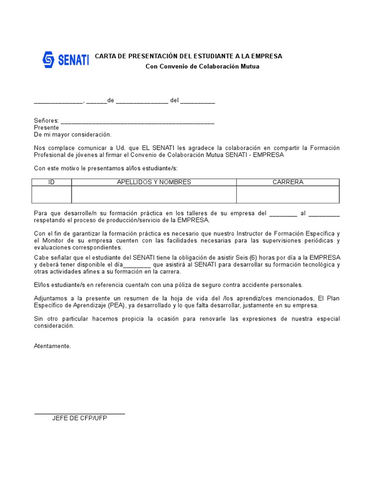 18+ Carta De Presentacion A Senati Descargar