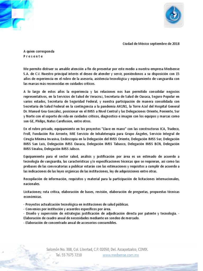 Carta de presentación empresa ingenieria y mantención industrial spa. Es una empresa muy versátil capaz de realizar prácticamente cualquier actividad relacionada con la construcción o con la elaboración de. Fue fundada el 28 de agosto de 1972 y es una de las empresas de su ramo con mayor experiencia en el estado. El primer párrafo debe explicar el motivo de la carta es decir la presentación de la empresa.