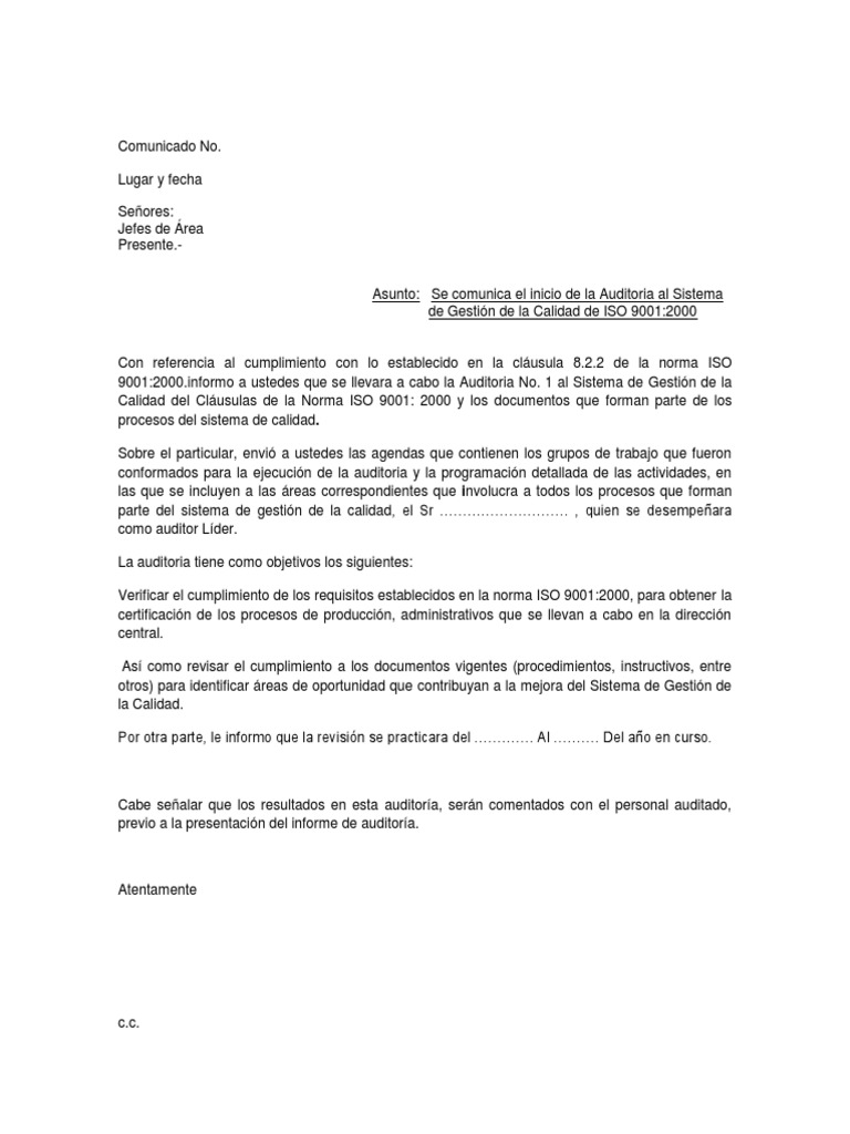 La responsabilidad por la preparación de los estados financieros lo que incluye la adecuada revelación corresponde a la administración de los intocables s a. Auditoria sistemas lunes 5 de diciembre de 2011. Forma correcta de elaborar una carta de presentación de auditoria en ecuador. Mc auditores del condado 123 col.