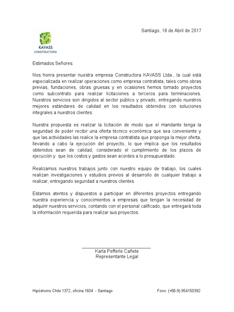 Eche un vistazo a nuestro excelente ejemplo de carta de presentación para contratista general para que se inspire y pueda obtener el trabajo de sus sueños. Presentación de la empresa ingeniería civil y construcción de obras iccosa es una compañía constructora con sede en la ciudad de guadalajara jalisco méxico. Carta de compromiso contratistas d dª. Se compromete a cumplir los siguientes requisitos en materia de calidad desarrollo sostenible ds y gestión de la energía de acuerdo a los requisitos internos y las políticas de asturiana de zinc s a u así como los.
