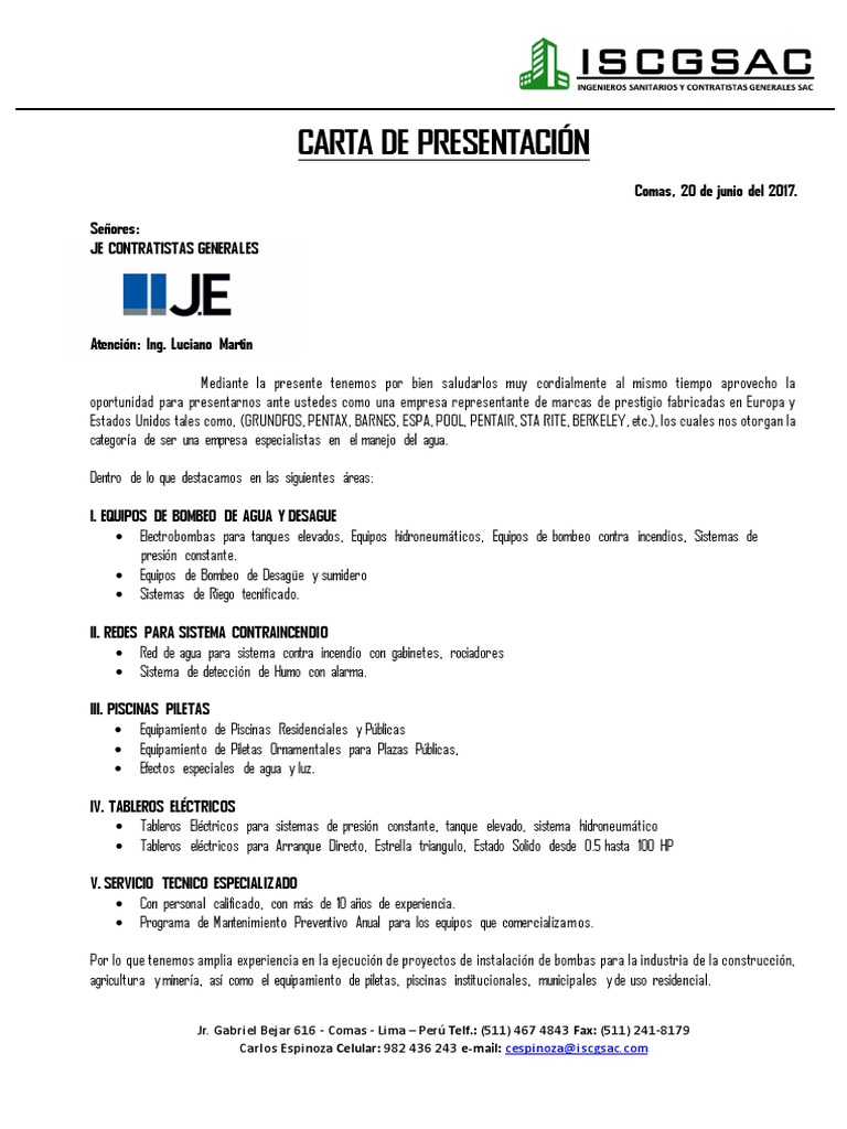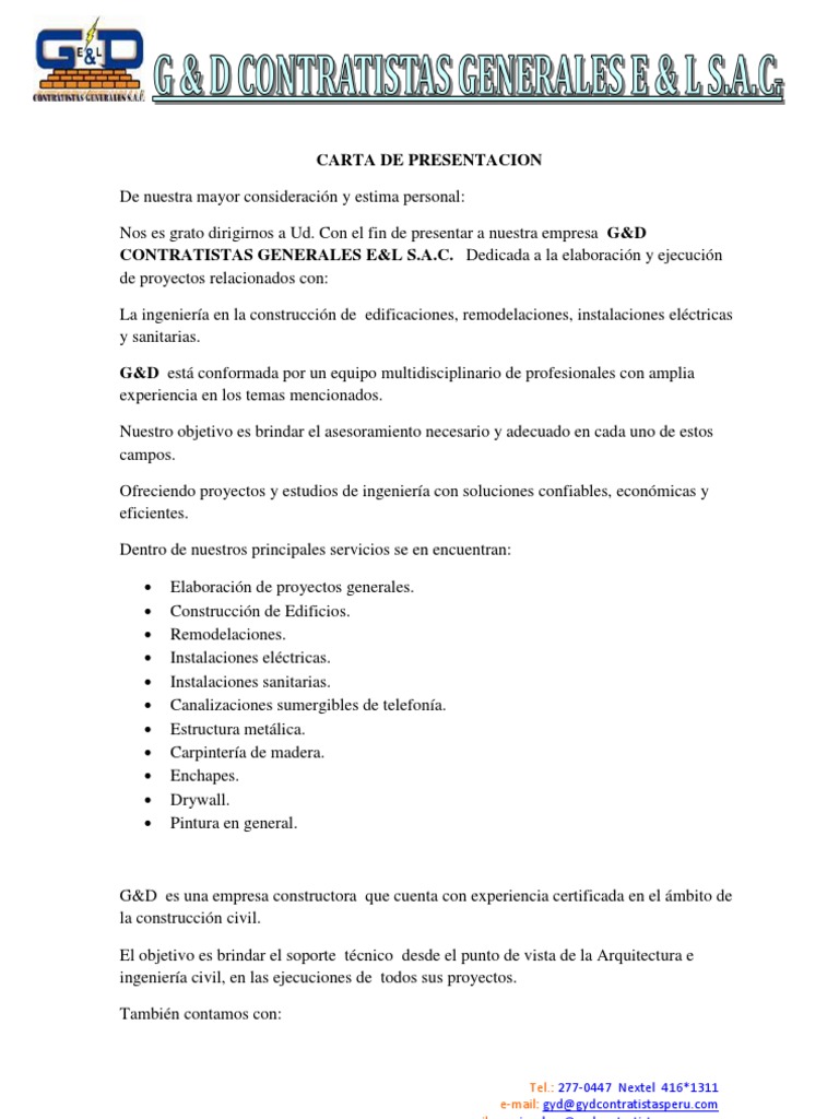 Carta de presentacion mostajo rivas ingenieros sac de nuestra mayor consideración y estima. Logo de la empresa que se presenta lugar y fecha sres. Hay una competencia feroz y debe destacarse. Fue fundada el 28 de agosto de 1972 y es una de las empresas de su ramo con mayor experiencia en el estado.