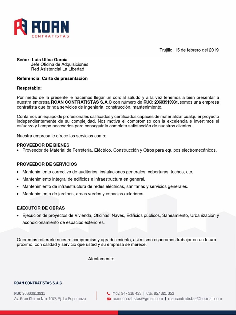 23+ Carta De Presentacion Empresa Contratista Descarga Gratuita