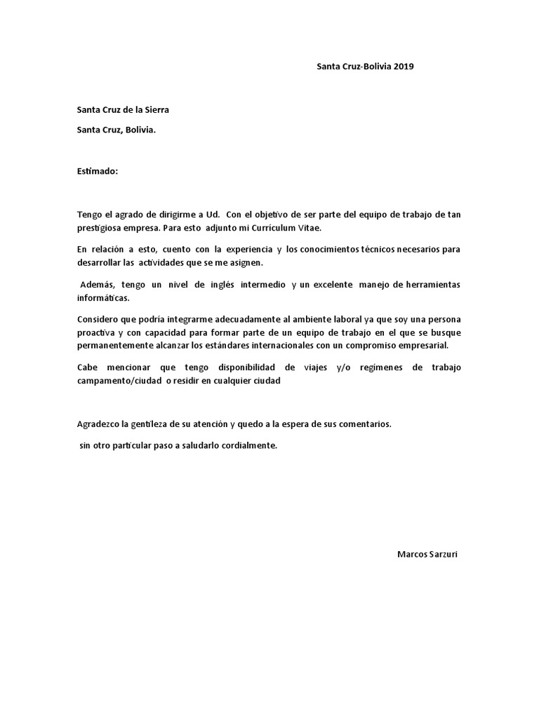 16+ Carta De Presentacion En Santa Cruz Bolivia Descargar