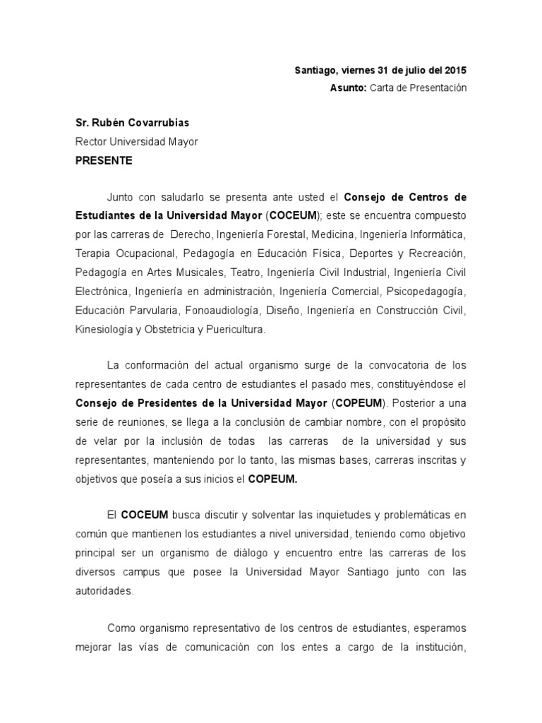 Carta de presentación empresarial. Lo ideal es que la carta vaya dirigida a la persona de recursos humanos o el jefe del departamento al que quieres enviar tu documento de esta manera muestras respeto y un genuino interés. Nombre de la empresa departamento rr hh paseo de la castellana 36 28046 madrid madrid 1 de agosto de 2015 estimados señores les hago llegar mi candidatura para el puesto de kinesiólogo en su centro. Carta de presentación laboral.