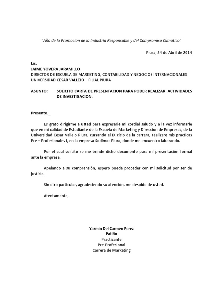 44+ Carta De Presentacion Universidad Cesar Vallejo Gratis