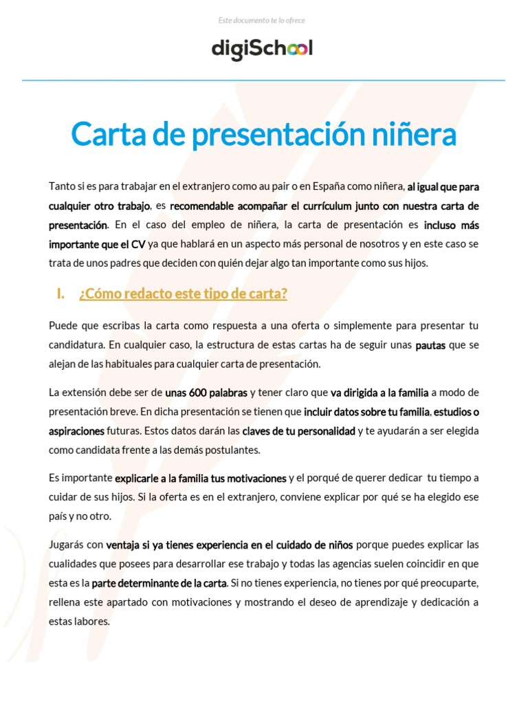 Carta presentacion cv niñera. Si no sabes cómo redactarla o por dónde empezar no te preocupes aquí tienes 7 modelos que te. Tanto dentro de españa como en el extranjero el mundo laboral ha hecho que cada vez más padres necesiten de estos servicios. Carta de presentación niñera i. El curriculum es muy importante ya que es la primera carta de presentacion.