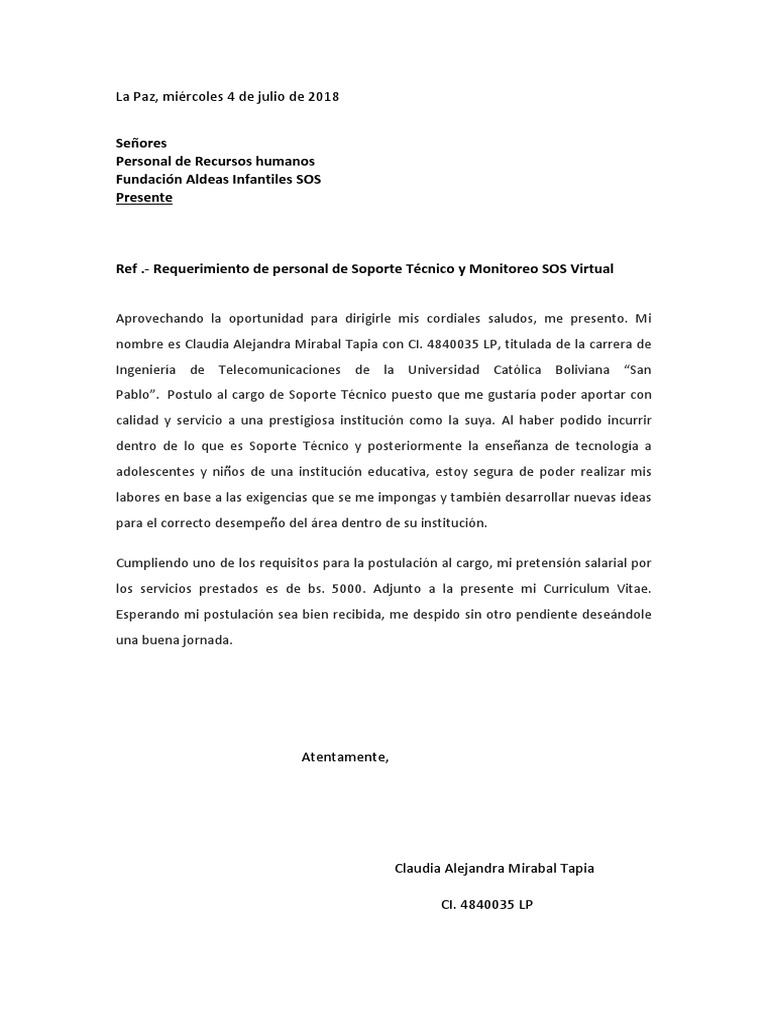 10+ Modelo De Carta De Presentacion Con Pretensión Salarial Gratis