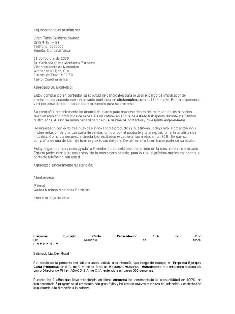 Ejemplo de pretensión salarial. Carta de presentacion y pretension salarial faboce. Podemos decir que existen dos grandes tipos de carta de presentación. A 22 de febrero del 2013.